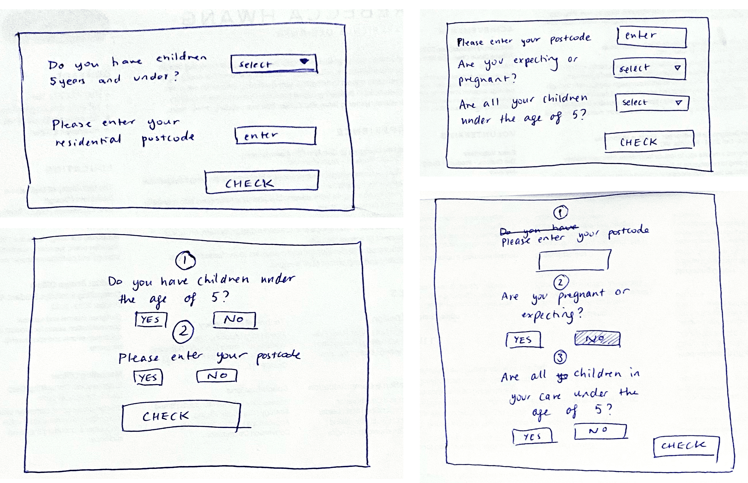 I decided to combine the two screening pathways into one tool, as I noticed there was overlap between the eligibility criteria of services and user research had indicated users were often unsure of what services were available at and that they would be eligible for.