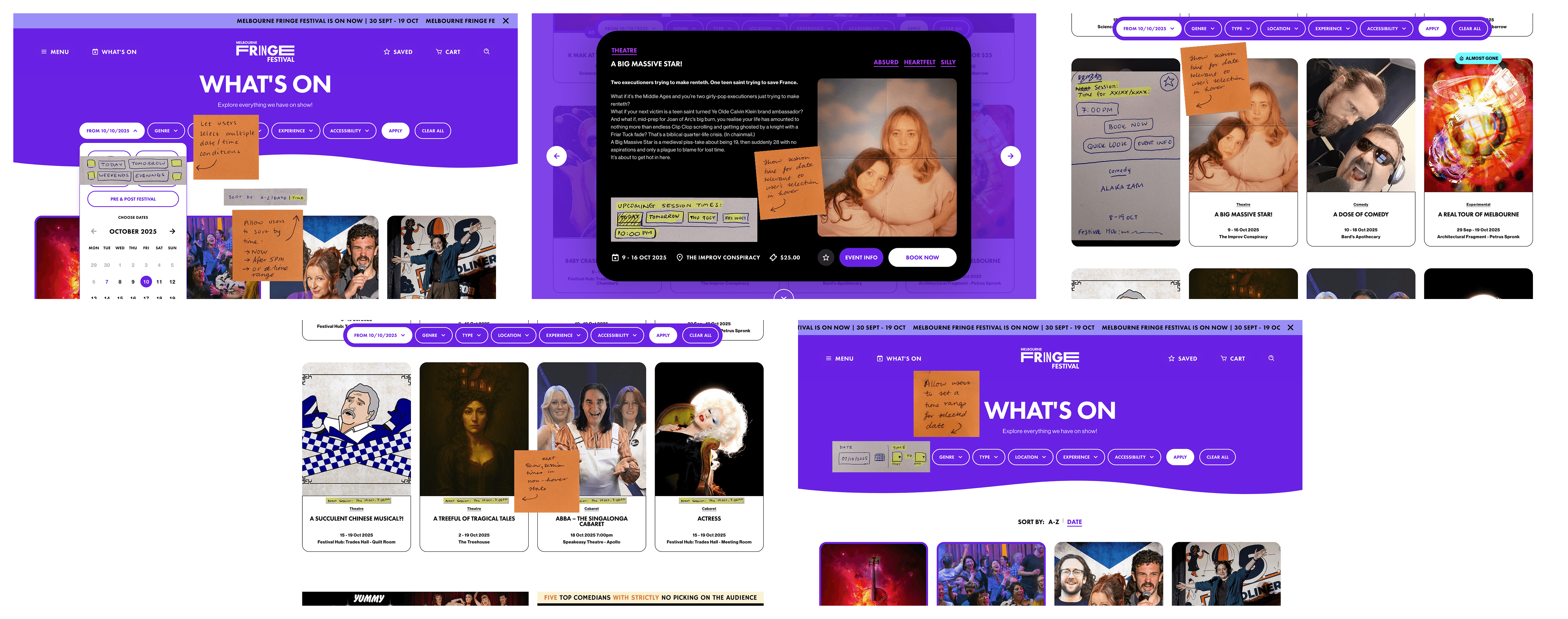 I identified a critical gap in the Fringe Festival website through real-world observation and redesigned program browsing to match how users actually plan their festival experience.