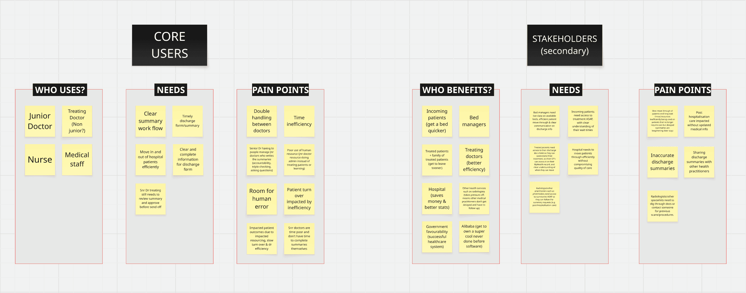 I led user interviews with a small sample of stakeholders of the problem space within a short 2-day user research sprint, which helped us identify key pain points in the patient discharge process.