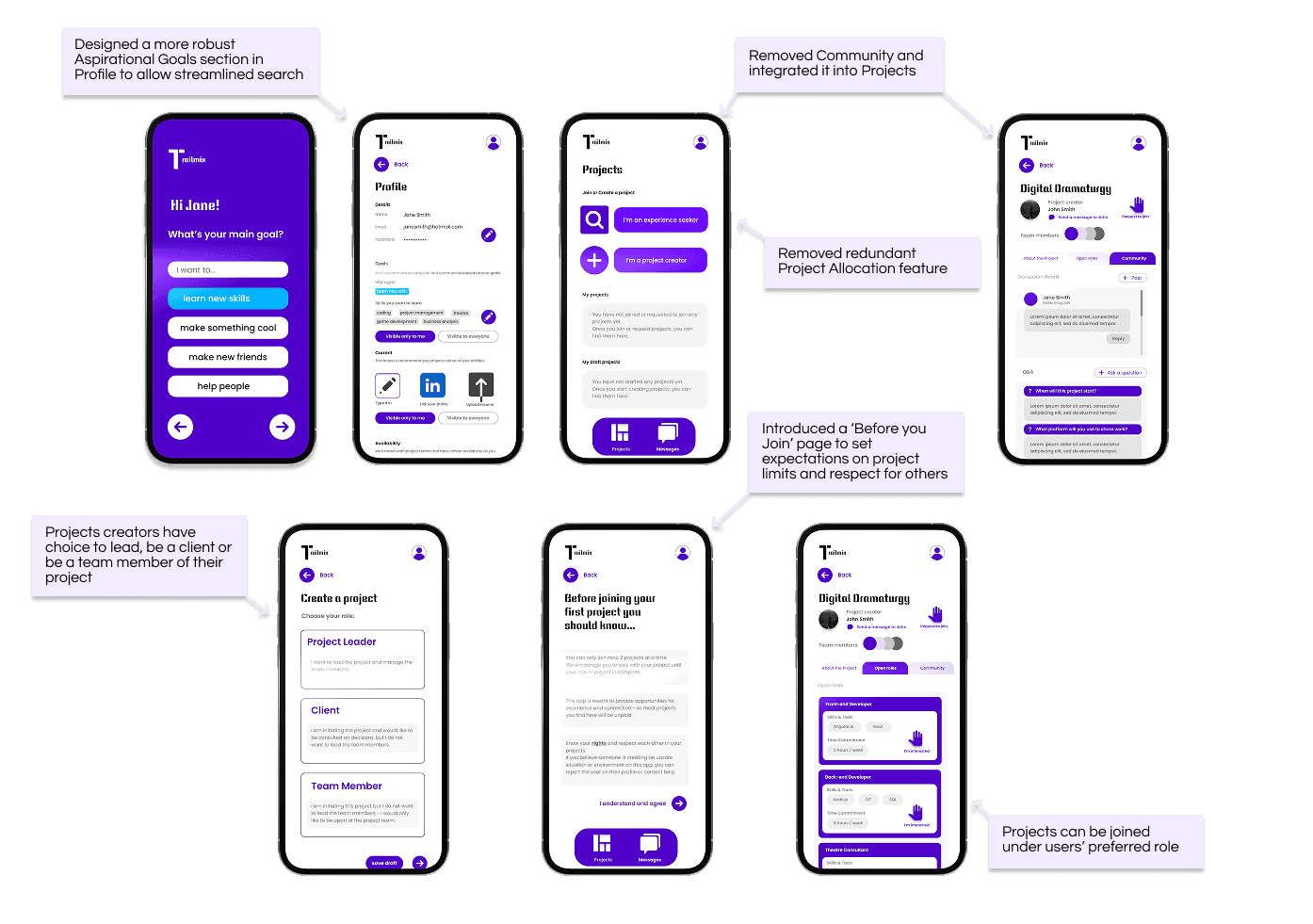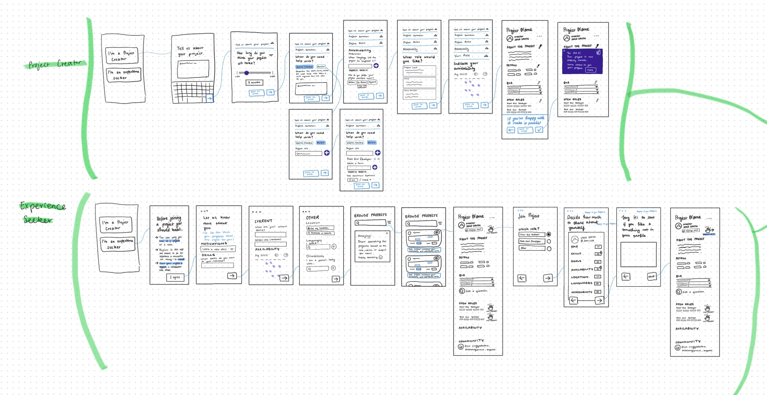 I proposed an app that fosters a social and collaborative online space to try out new skills in a low-stakes environment with people that hold similar interests or goals by working on projects with new people.